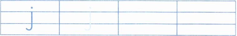 j: 第一笔左竖弯,第二笔点;写在四线格的中下格。