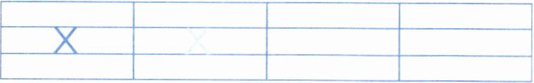 x: 第一笔右斜,第二笔左斜;写在四线格的中格。
