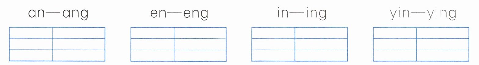 【解析】:这道题要求比较并写出对应的音节,主要是让学生区分前鼻音(an、en、in)和后鼻音(ang、eng、ing)以及整体认读音节(yin、ying)的差异。需要根据题目所给的四组音节,正确书写对应的音节。