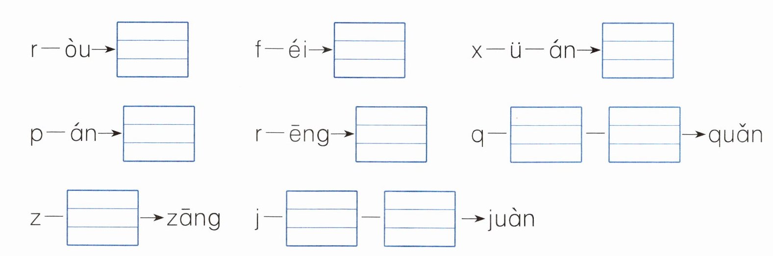 一、按顺序写出缺少的复韵母和整体认读音节。