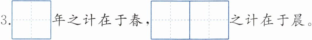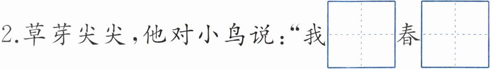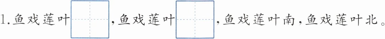 秋天,大雁在蓝蓝的天上飞着,一( )会儿排成个“一( )”字,一( )会儿排成个“人”字。正在用尖尖的嘴巴给树治病的啄木鸟看见了,大声说:“大雁真厉害,会在天空中写字呢!”