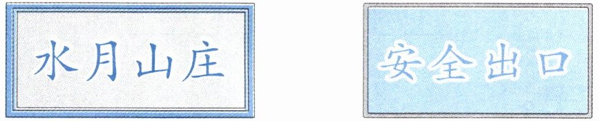 七、用“〇”圈出下面标牌中你认识的字,把你会写的字抄写在田字格里。