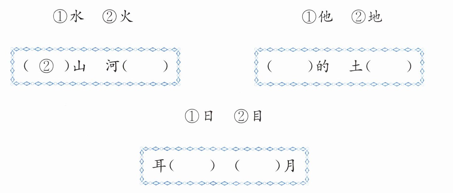 田字格中抄写(根据学生会写的字抄写,以下为示例):