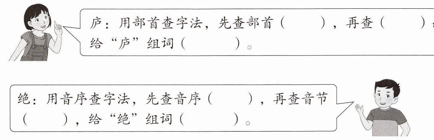1. “庐”字用部首查字法,应先查部首