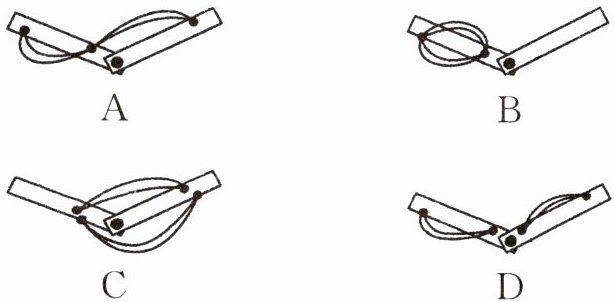 3. 兴趣小组利用小木板、螺钉和橡皮筋制作了模拟运动员运动系统的模型。如图模型中,最为合理的是( )
