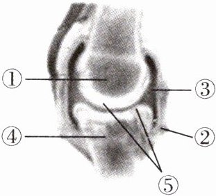 5. 骨性关节炎是由关节软骨受损或软化而引起的一类疾病。患者严重时会导致关节畸形和运动功能丧失。结合膝关节示意图分析,下列说法中错误的是( )