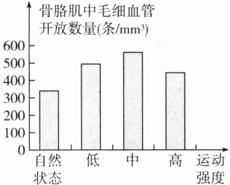 B.与自然状态组相比,不同运动强度下每立方毫米骨骼肌中毛细血管开放数量均增加