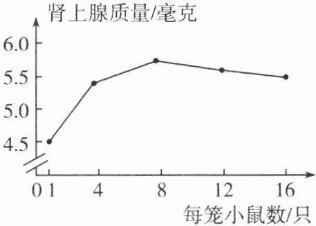 C 点拨:分析题图,小鼠为1只的时候,肾上腺质量为4.5毫克;在饲养密度较大的情况下,小鼠的肾上腺质量在5.5毫克左右,此时肾上腺分泌的肾上腺素也大大增加,肾上腺素有促使心跳加快、血压升高、血流加快,使皮肤血管扩张的功能。