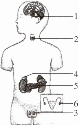 12. 激素在人体内含量较少,作用却很大,在人的生命活动过程中,起到了重要的调节作用。如图是构成人体内分泌系统的主要内分泌腺示意图,请回答问题。