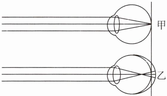 (3)晶状体 乙 眼球前后径过长,或角膜、晶状体曲度过大且不易恢复原状,看远处物体时,物像落在视网膜的前方