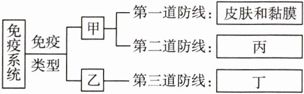 B.丙是指体液中的杀菌物质和淋巴细胞