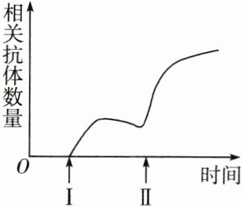 6. 如图,Ⅰ和Ⅱ分别表示某种病毒两次侵染人体的先后时间顺序,曲线表示人体产生抗体的数量变化。下列有关叙述,错误的是( )