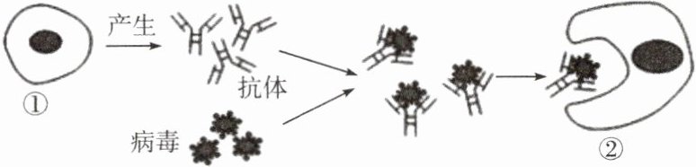 D 点拨:该免疫过程是人体的第三道防线,可以产生抗体,清除抗原,属于特异性免疫,A错误。①淋巴细胞产生的抗体只能与流感病毒结合,B错误。人体抵抗侵入的流感病毒,除了由题图中所示过程的特异性免疫,还包括第一、二道防线的非特异性免疫,C错误。预防传染病的措施包括控制传染源、切断传播途径和保护易感人群,加强体育锻炼属于保护易感人群,D正确。故选D。