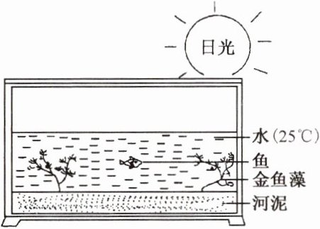 14. 下图是一个密封的养鱼缸,它是一个自我平衡的生态系统。请分析它能在一定时间内保持动态平衡的原理:
