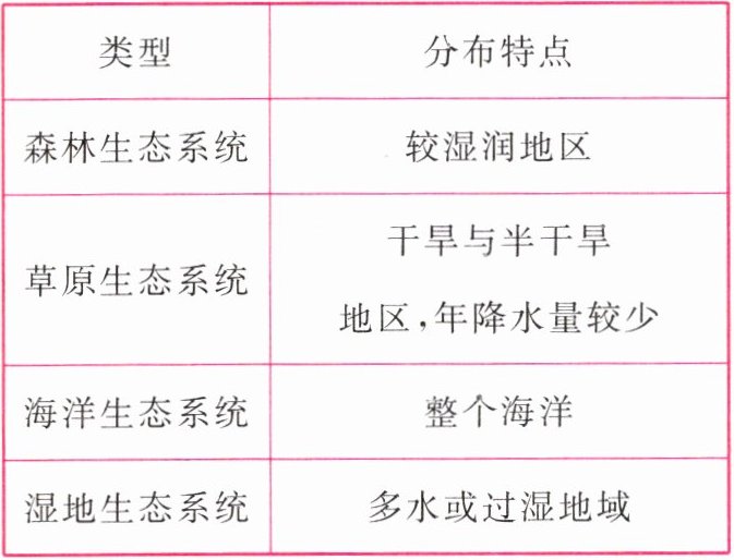 | 草原生态系统 | 干旱与半干旱地区,年降水量较少 |