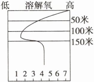 (3) 实验结果表明,缺氧层在 100~150 米的水层,其原因是______,白天含氧量又稍微增加,其原因是______。
