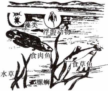 (2)浮游动物、食草鱼、食肉鱼、螺蛳