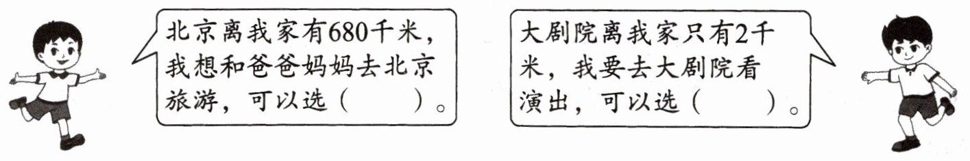 (2)他们选择上面的哪种出行方式比较合适?(填序号)