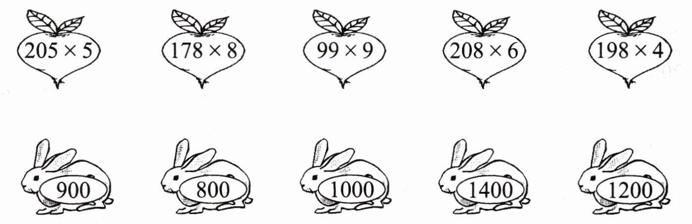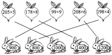 3. 下面各题的积比较接近哪一个数?连一连。