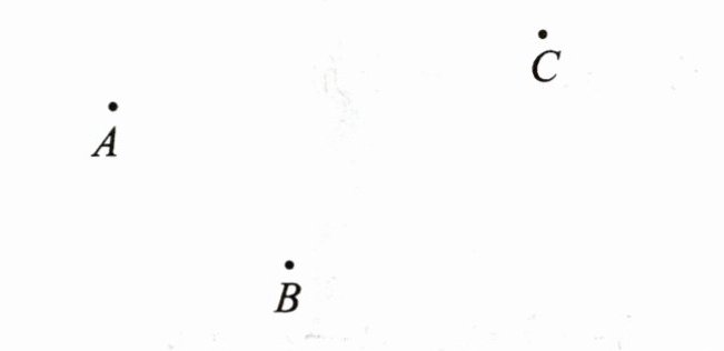 把圆规的针尖对准点$A$,铅笔芯对准点$B$,得到圆规两脚间的距离为线段$AB$的长度。