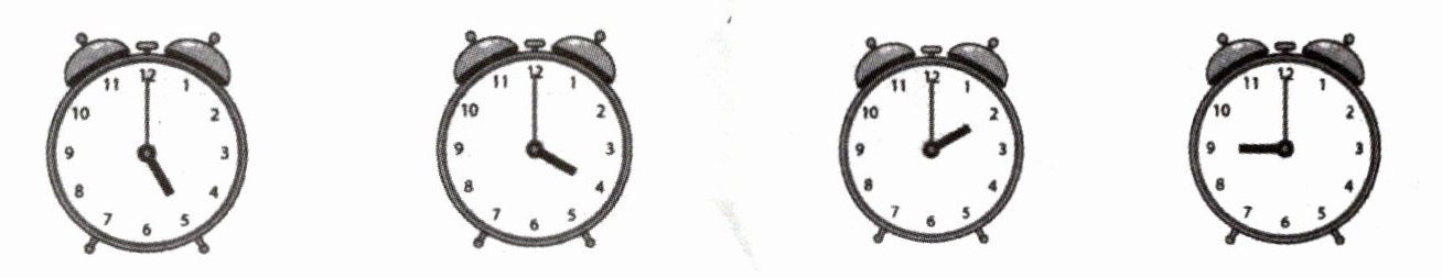 2. 下面钟面上的时针和分针所形成的角分别是什么角?