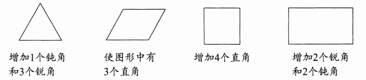 增加1个钝角 和3个锐角 使图形中有 3个直角