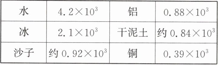 |沙子|约$0.92×10^{3}$|铜|$0.39×10^{3}$|
