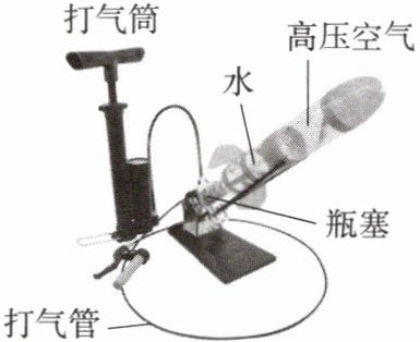 3. 小乐用塑料瓶自制了如图所示的“水火箭”。发射时,“水火箭”内的高压空气推动水向下喷出,从而获得动力升空,此过程的能量转化情况与四冲程内燃机的