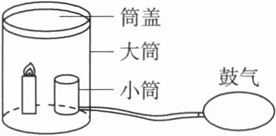 4. 在学校消防安全教育中,专业人员进行了“空气中悬浮的粉尘在一定条件下可能爆炸”的模拟实验。如图所示,在无盖小筒里放入干燥面粉,用筒盖盖上大筒,向小筒内鼓入空气,面粉迅速被点燃引发爆炸,把筒盖冲起。面粉燃烧产生的