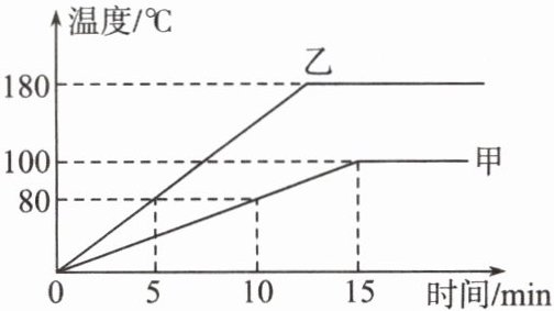 。若甲、乙的质量均为$2kg$,甲在$15min的时间内吸收了8.4×10^{5}J$的热量,则甲液体的比热容为4.2×10³ J/(kg·℃)