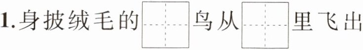 1. 身披绒毛的 $\begin{array}{c} yòu \\ \hline \end{array}\\ \hline $ 鸟从 $\begin{array}{c} cháo \\ \hline \end{array}\\ \hline $ 里飞出来,$\begin{array}{c} dāi dāi \\ \hline \end{array}\\ \hline $ 地立在枝头。