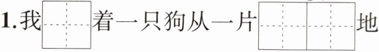 1. 我$\overset{\mathrm{q}\mathrm{i}ā\mathrm{n}}{□ }着一只狗从一片\overset{\mathrm{z}\mathrm{h}\mathrm{u}ā\mathrm{n}\mathrm{g}\mathrm{j}\mathrm{i}\mathrm{a}}{□ □ }$地经过时,发现了一颗精致的$\overset{\mathrm{é}\mathrm{l}\mathrm{u}ǎ\mathrm{n}}{□ □ }$石。