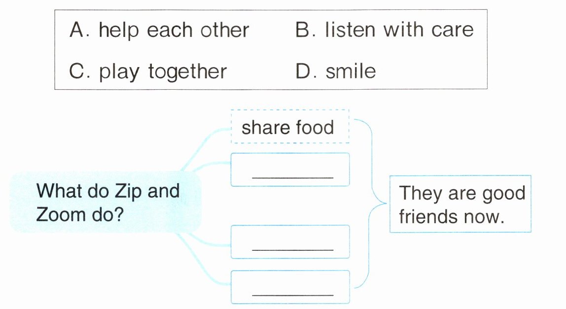 读教材故事,完成信息梳理。 将正确答案的序号填在横线上。