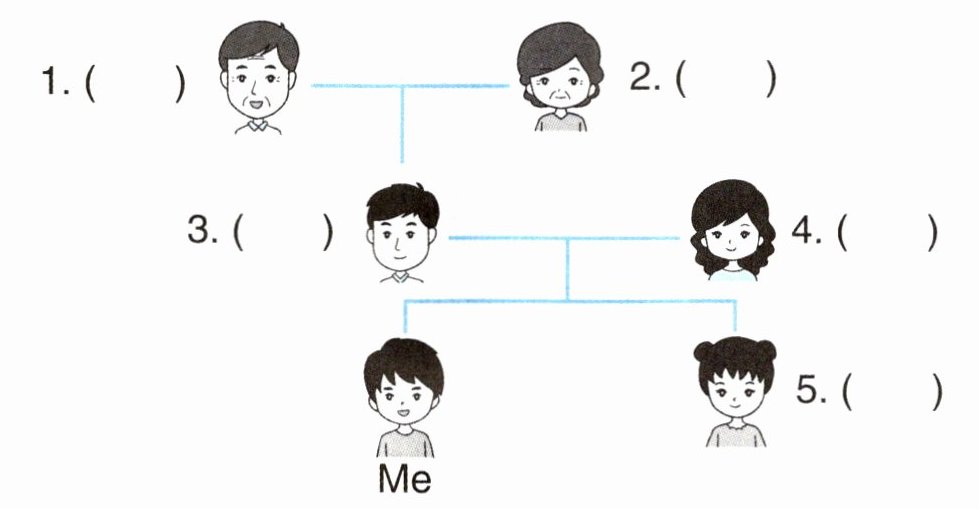 观察家庭成员关系图,选一选,补充完整。