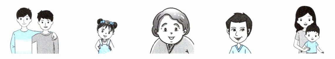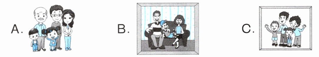 家庭互动时间到了,各组家庭分享起了各自的家庭照片。听录音,按所听顺序用 1-5 给图片排序。