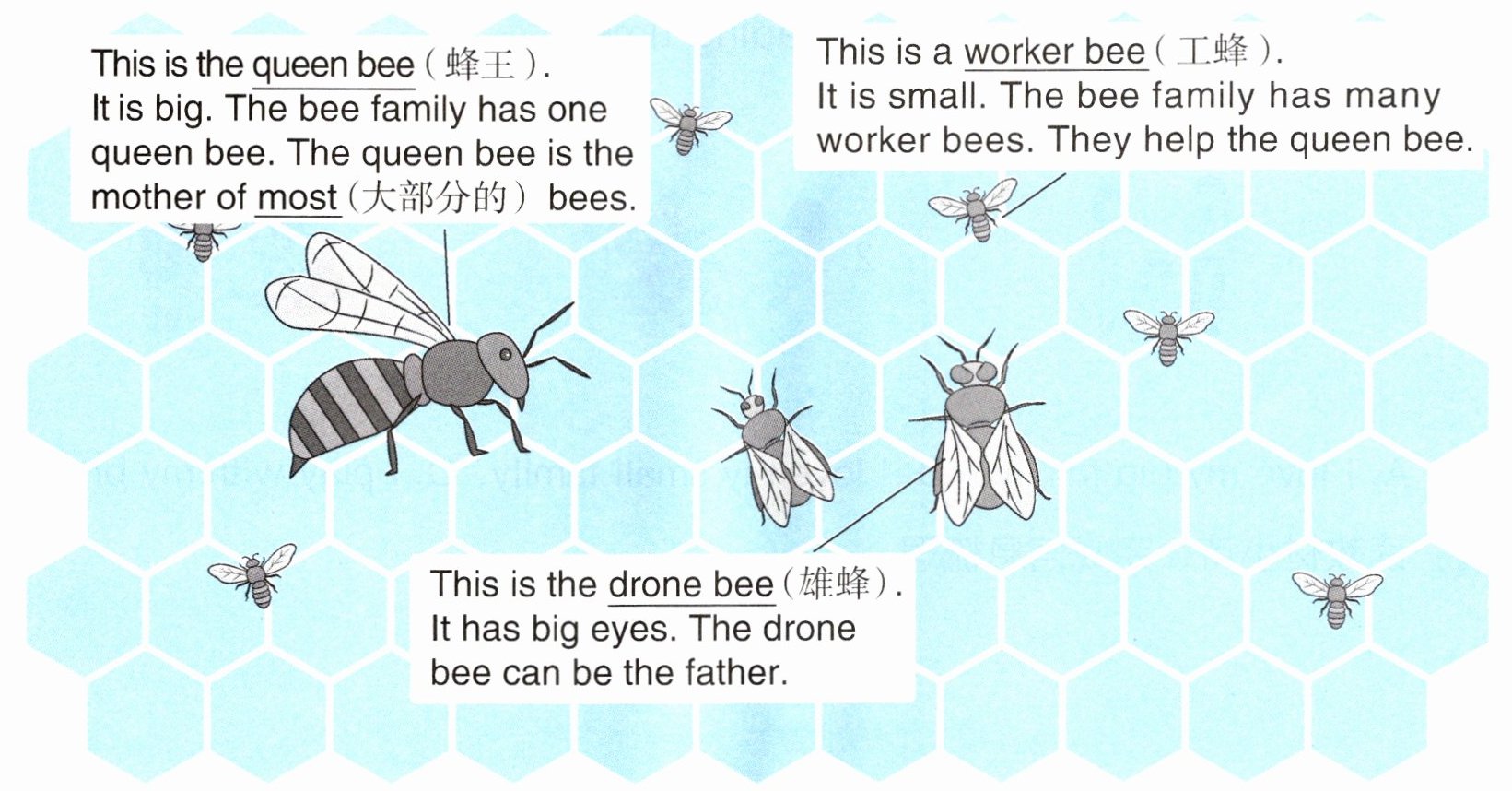 蜜蜂大家庭分工明确。 读材料, 选择填空。