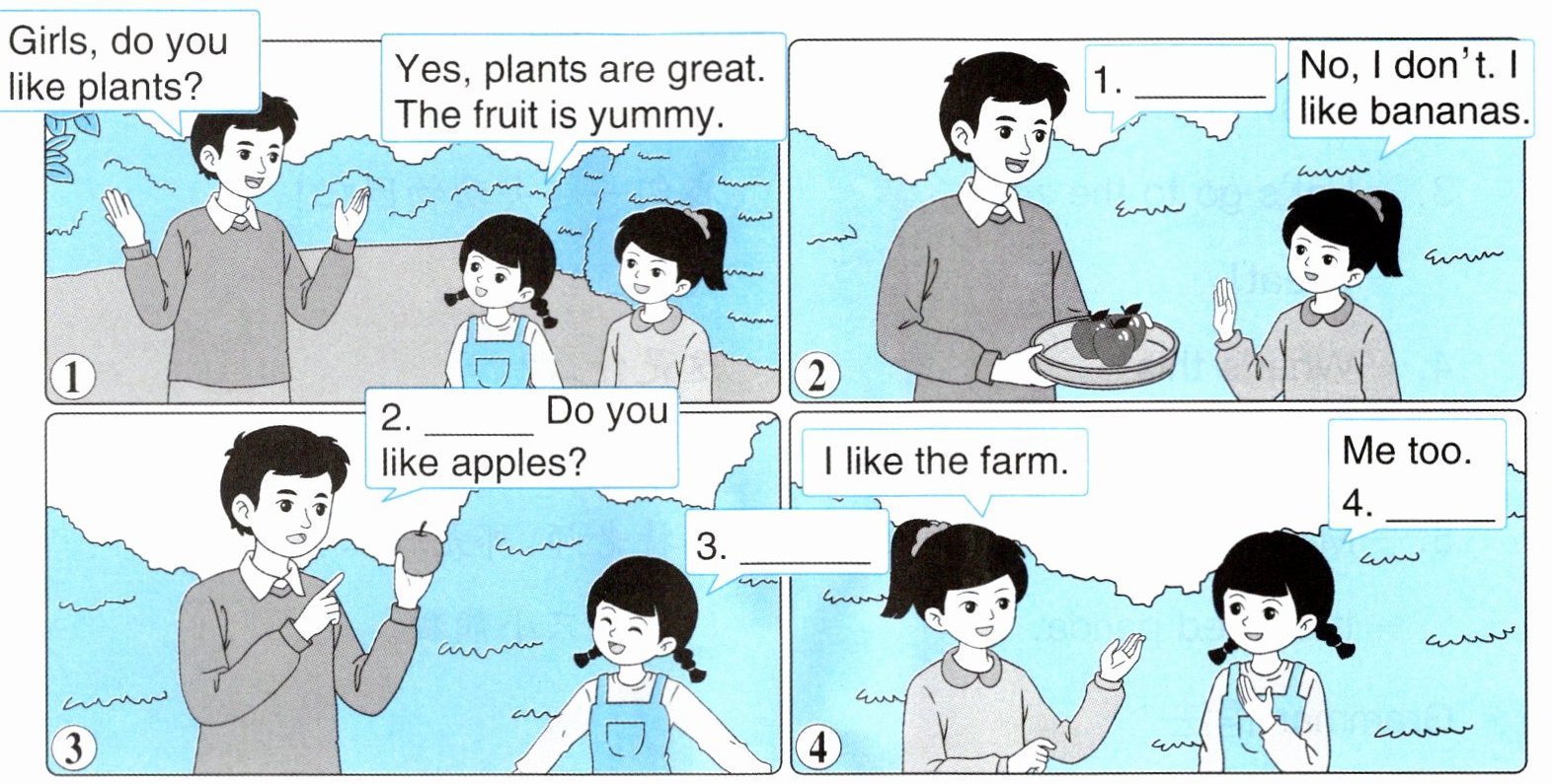 一 李老师带领孩子们来农场感受植物对人类的贡献,请根据对话内容,补全对话。
