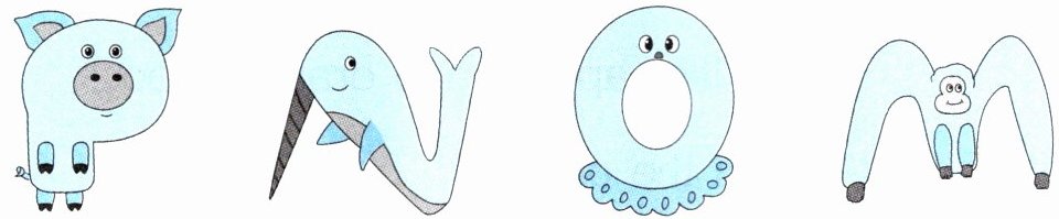 Jina 想认识更多的动物朋友,但是它们排错队了。 你能帮助她按字母表顺序重新给它们排队,再将相应的大小写形式写在四线三格中吗?