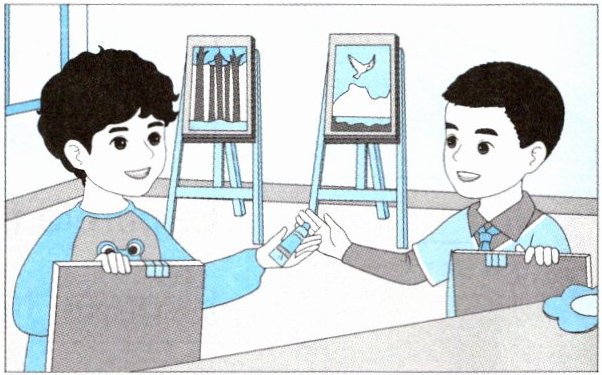 A. Blue and yellow make green. B. It’s yellow. C. I like green.