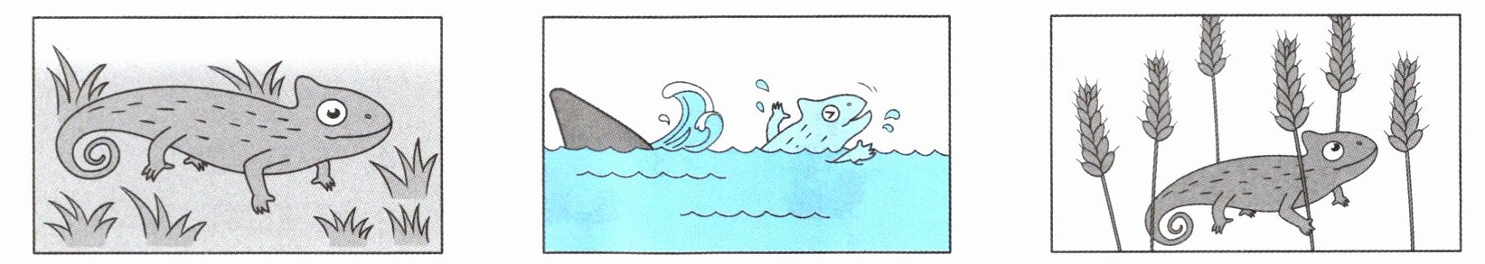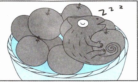 C. I'm a chameleon(变色龙). I'm in the grass. I'm green here.