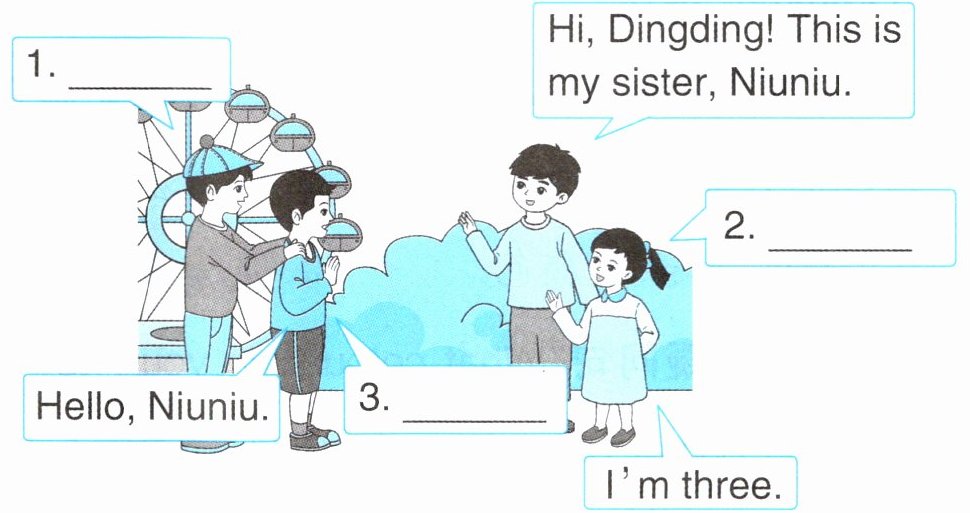 毛毛他们在游乐场遇见了朋友。 他们说了什么呢? 选一选,完成对话。