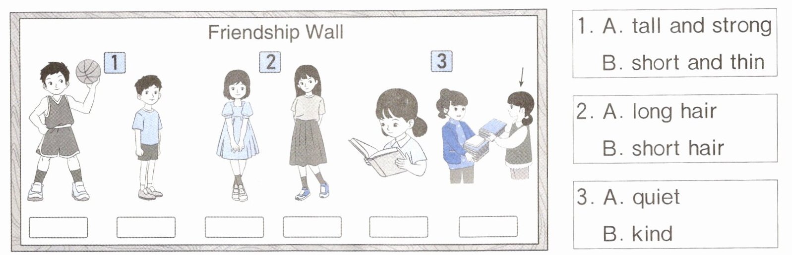 )I have a friend. He is strong. He has short black hair. He has big eyes. He often reads books. I like my friend. What's his name? (