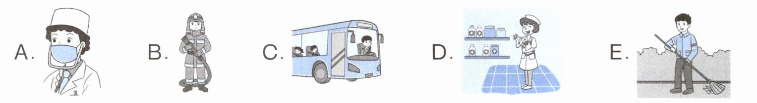 . They are very helpful.| Jobs | bus driver | cleaner | firefighter | doctor | nurse |... |