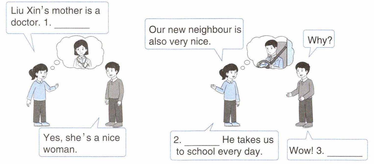 )5. Our neighbour is a doctor. She helps a lot of people.