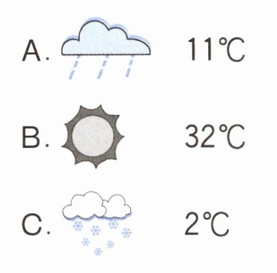 )3. —What's the weather like in London? —It's cool and rainy.