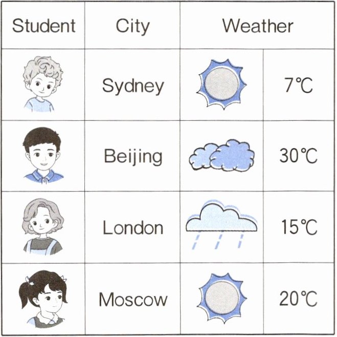 )4. It is sunny in Moscow.任务二:根据表格,选择正确答案。