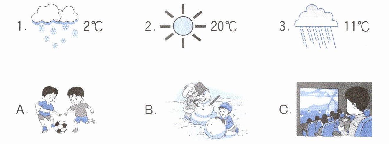 根据天气帮同学们合理安排活动。 读一读,将编号填写在横线上。