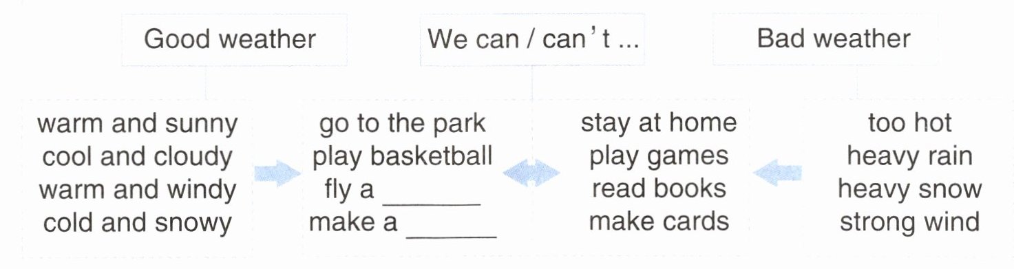任务一:根据短文内容,将在好天气和坏天气可以做的活动分类。