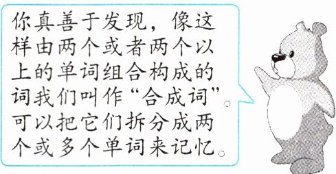 你真善于发现,像这样由两个或者两个以上的单词组合构成的词我们叫作“合成词”。可以把它们拆分成两个或多个单词来记忆。