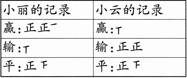 小丽赢次数应等于小云输次数(小丽赢=小云输),小云输为10次,故小丽赢应为10次,而非11次。